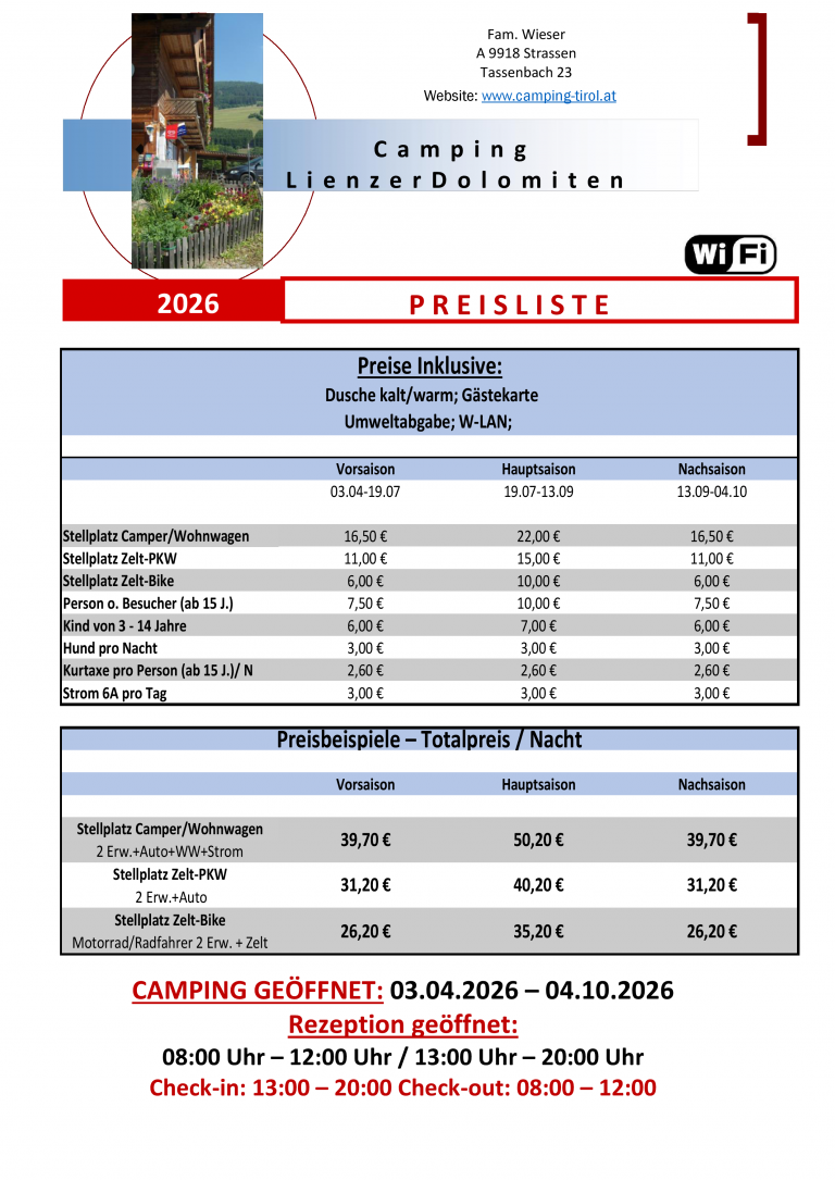 Bei einer FIXRESERVIERUNG ab 3 Nächten Aufenthalt verlangen wir eine Anzahlung von € 100,–.
